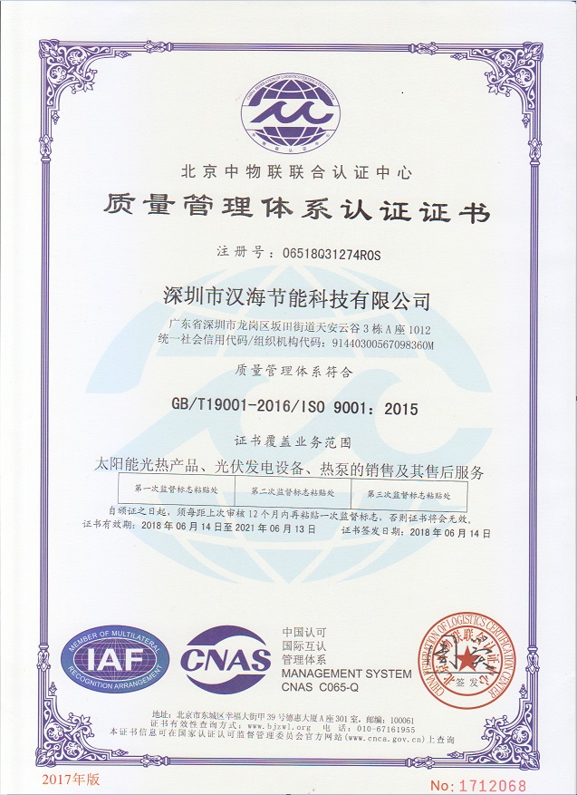 深圳市漢海節(jié)能科技有限公司成立于2011年,注冊(cè)資金6000萬(wàn)元,總部設(shè)在深圳,是一家集設(shè)計(jì)、研發(fā)、施工于一體的專業(yè)化從事太陽(yáng)能中央熱水工程、熱泵中央熱水工程、中央空調(diào)、光伏發(fā)電、水處理等新能源及節(jié)能環(huán)保行業(yè)的綜合服務(wù)商和工程商。在將近10年的發(fā)展歷程中,始終走在行業(yè)發(fā)展的前沿,是專業(yè)從事太陽(yáng)能光熱、光伏,空氣源、太陽(yáng)能熱水工程、水源熱泵,中央空調(diào),水處理產(chǎn)品的設(shè)計(jì)、安裝、售后服務(wù)為一體的高新技術(shù)企業(yè);是專業(yè)提供太陽(yáng)能中央熱水工程、熱泵中央熱水工程、中央空調(diào)工程、光伏發(fā)電工程、水處理工程、太陽(yáng)能熱水工程等全面解決方案的供應(yīng)商和工程商,產(chǎn)品涵蓋太陽(yáng)能集熱器、空氣源熱泵、水源熱泵、中央空調(diào)、光伏組件、太陽(yáng)能熱水工程等,是新能源的倡導(dǎo)者和推動(dòng)者。公司成立以來(lái),始終秉承“誠(chéng)信、責(zé)任、專業(yè)、高效”的服務(wù)宗旨,以市場(chǎng)需求為導(dǎo)向,以為客戶創(chuàng)造價(jià)值為己任的精神,不斷開拓創(chuàng)新,通過(guò)多年的快速發(fā)展,公司綜合實(shí)力躍居行業(yè)前列。漢海擁有一支經(jīng)驗(yàn)豐富、善打硬仗的專業(yè)高效團(tuán)隊(duì);擁有一批專業(yè)的高級(jí)工程師、中級(jí)工程師、二級(jí)建造師、造價(jià)工程師、電氣設(shè)計(jì)師、給排水設(shè)計(jì)師;擁有一批機(jī)電、安防、水、電等專業(yè)技術(shù)施工和售后人員,配備先進(jìn)齊全,實(shí)力雄厚,技術(shù)領(lǐng)先。漢海以質(zhì)量樹信譽(yù)、以工藝立標(biāo)桿、以管理創(chuàng)效益、以服務(wù)得人心,工藝水平在業(yè)界獨(dú)樹一幟,成為行業(yè)模仿的典范。漢海承建的機(jī)電工程(設(shè)計(jì)、施工)涉及星級(jí)酒店、賓館、高檔辦公樓、花園別墅、住宅小區(qū)、學(xué)校、水療中心、工廠等各種類型的工程,工程項(xiàng)目遍布全國(guó)各地。漢海將致力于成為全球信賴的新能源綜合服務(wù)商,為客戶提供新能源的全方位解決方案。未來(lái),漢海將依托國(guó)家政策,積極開拓粵港澳大灣區(qū)、中國(guó)特色社會(huì)主義先行示范區(qū)市場(chǎng)及“一帶一路”沿線國(guó)際市場(chǎng),推動(dòng)新能源的新輝煌。